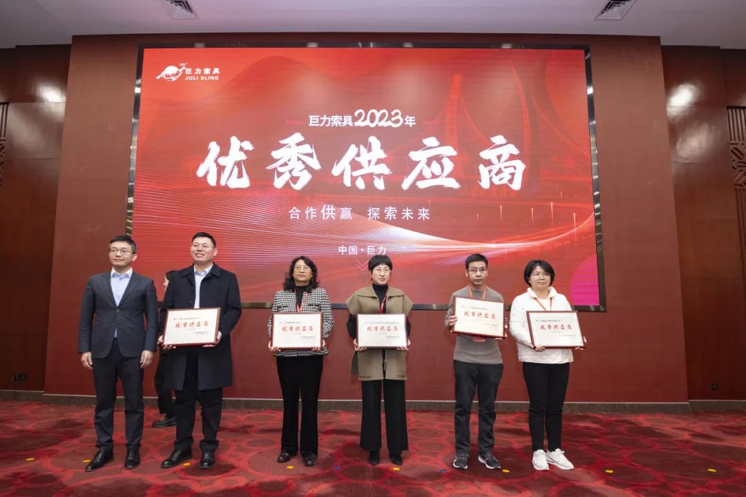 2023年,巨力索具和供给商火伴在高层互访、产物开辟、手艺同享等范畴获得了诸多功效。为感激供给商在品德、立异、保供及协作等方面作出的凸起进献,本次大会向10家供给商授与了“优异供给商”奖项。