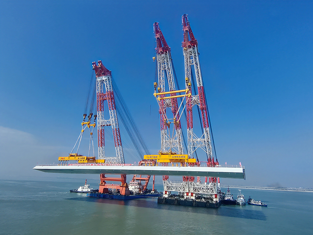 巨力索具助力厦金大桥(厦门段)首榀小节段钢箱梁吊装顺遂实现