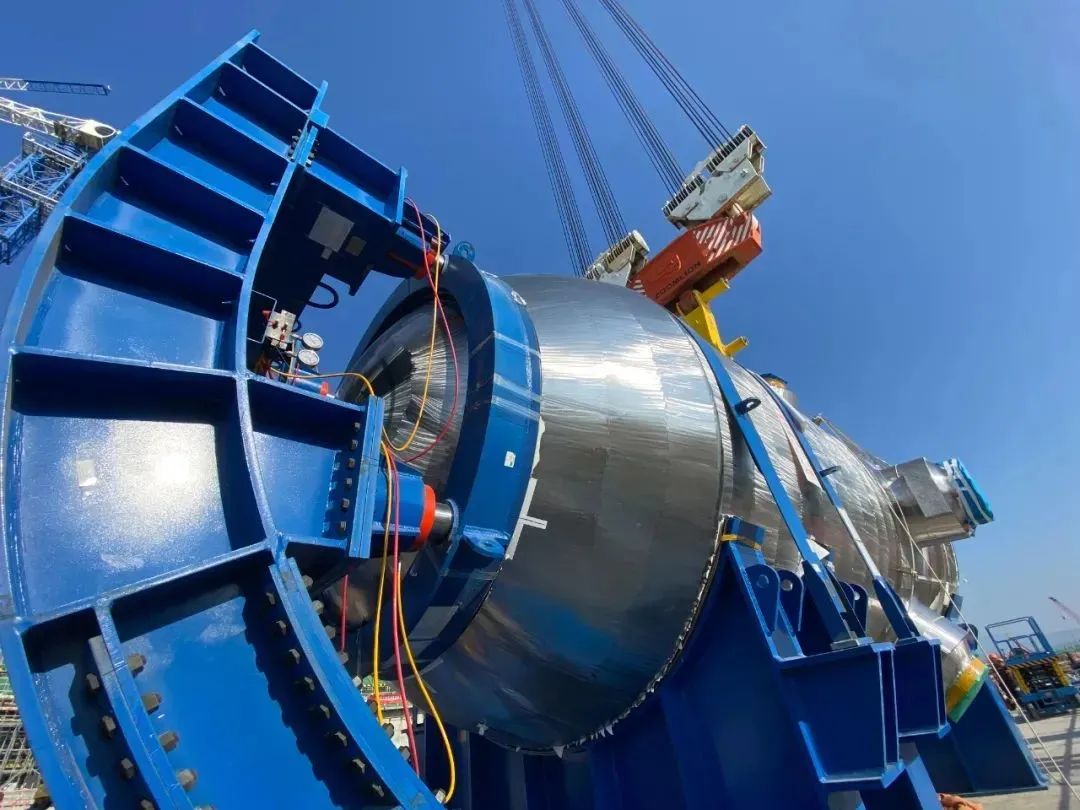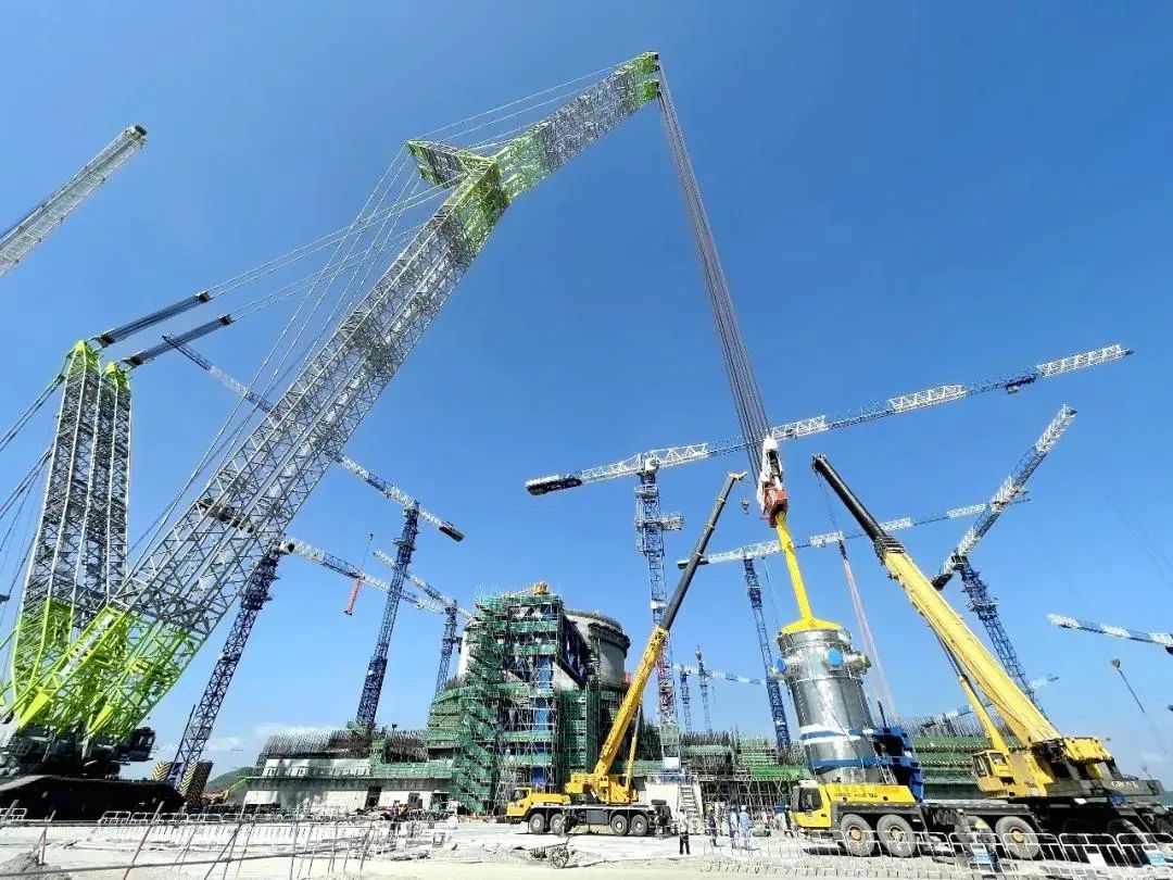 2021年10月19日,由中国核电工程无限公司总承包的第15台核电机组——“华龙一号”批量化扶植漳州核电1号机组反映堆压力容器宁静稳当吊装胜利,全数吊装进程中所用的吊具均由巨力索具供给,首创了国际自立三代核电反映堆压力容器在核岛内部翻转后垂直引入的“华龙新记实”。