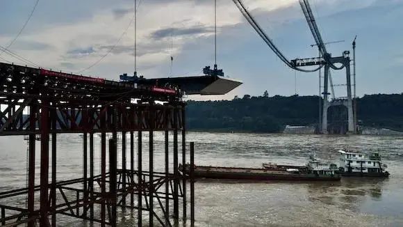 江津白沙长江大桥首节钢箱梁吊装胜利,本年无望建成通车