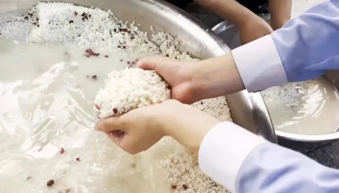 大师围聚在一路,现场氛围其乐陶陶。纯熟的“妙手”,一手拿着粽叶,一手抓着糯米,将粽叶做漏斗状,填糯米,压紧实,封口,扎捆,巧手翻飞,举措敏捷夸姣,还不忘时不断向身旁的“老手”教授包粽子的方法。“老手”观看着、进修着,碰到“粽叶散了、绳索松了”等小题目还不住地向“妙手”就教。