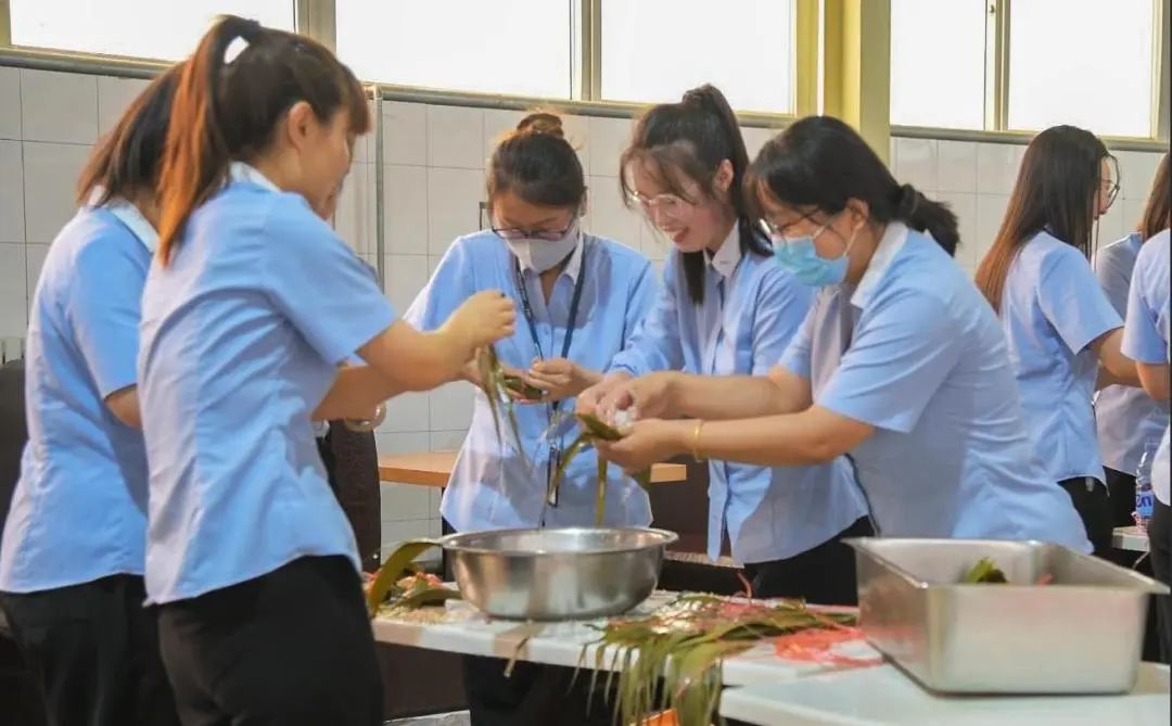 机关人员们其乐陶陶地亲身体验转手包端午粽子,