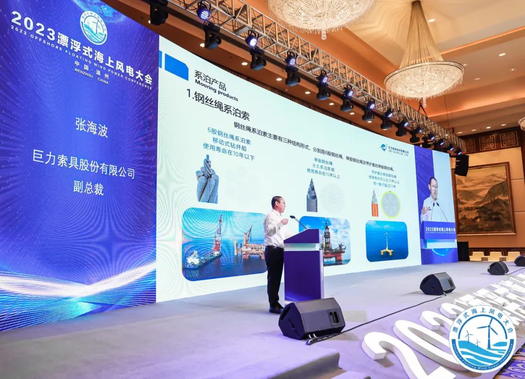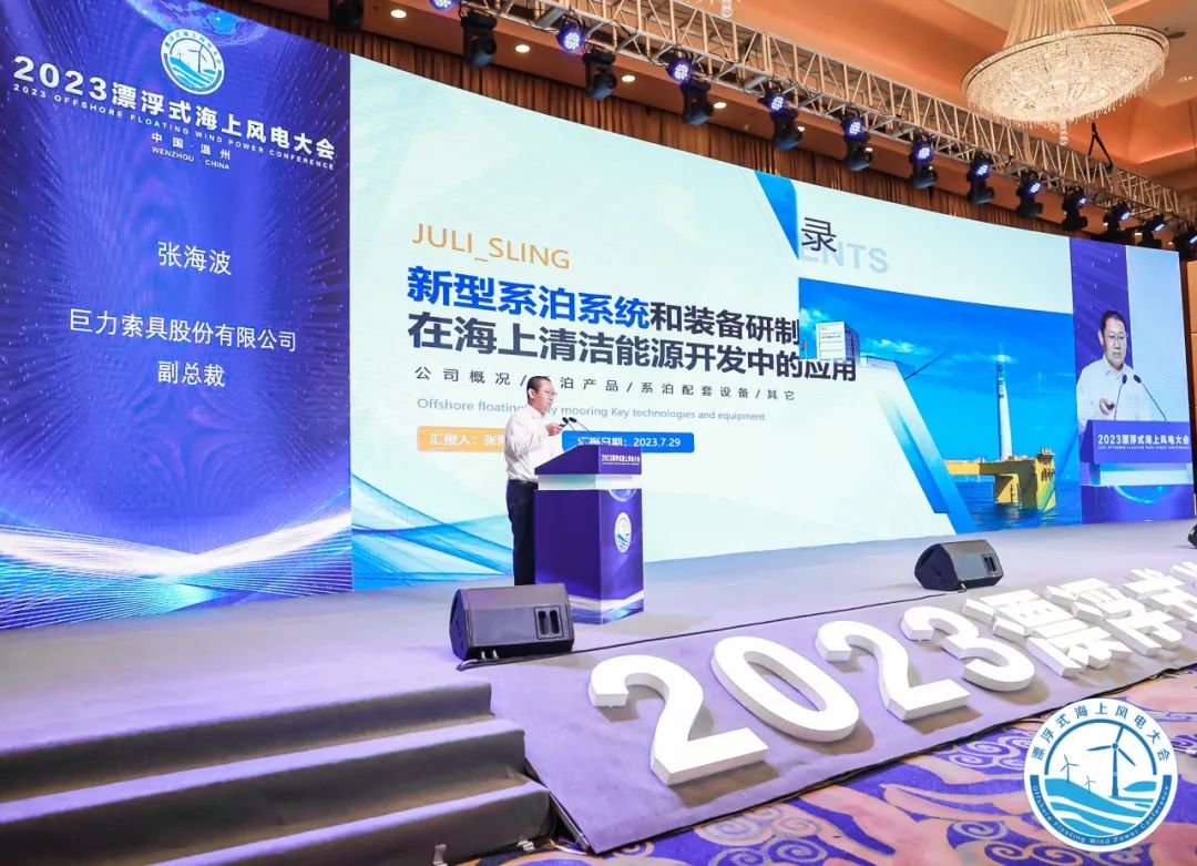 2023年7月28日-29日,温州市国民当局结合中国陆地工程征询协会海上风电分会、国度风力发电工程手艺研讨中间等风电重点企奇迹单元举行的“2023年漂泊式海上风电大会”顺遂召开。巨力索具副总裁张海波列席集会并做报告。